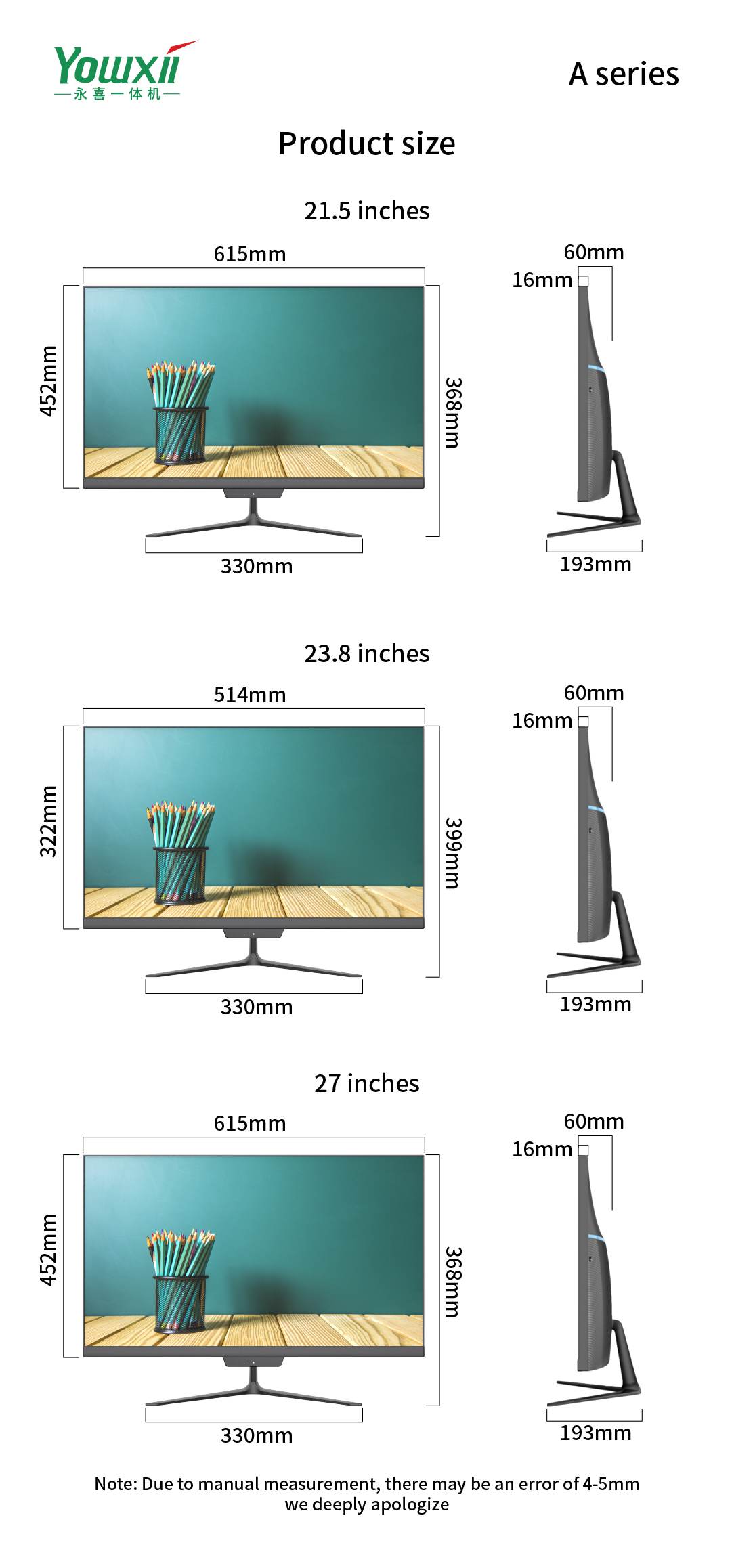 Product size(mm) 21.5'':490*193*293mm 23.8'':514*193*322mm 27'':615*193*368mm