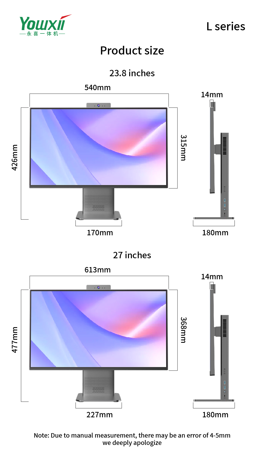 Product size(mm) 23.8": 610*175*470mm 27": 695*220*560mm