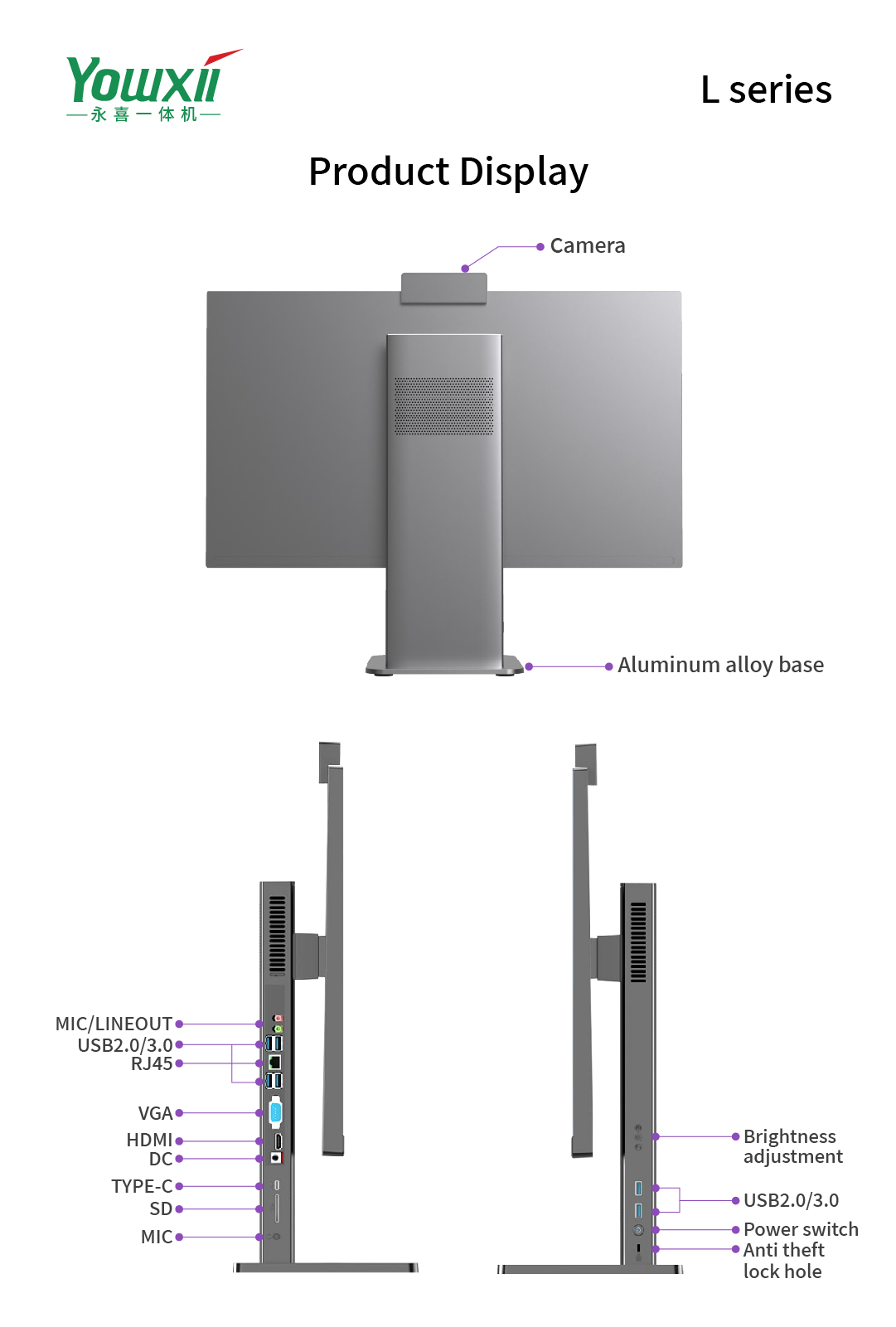 Panel interface 1 * 2-in-1 audio interface, 1 * Type-c, 2 * USB2.0/3.0, 1 * anti-theft lock hole